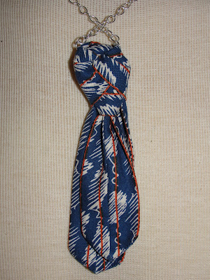 I really love the way this fabric looks with the skirt I just finished making (more on that later……) and I was trying to find a way to incorporate it into the finished outfit…………..this was the perfect solution. 😀 I have another fabric that would look great with the skirt, too. Maybe another necktie necklace is is order.