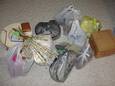 The family’s collective garage sale finds— We were thoroughly joyful and yet disgusted with ourselves for the excess of “junk” that we drug home. 😉