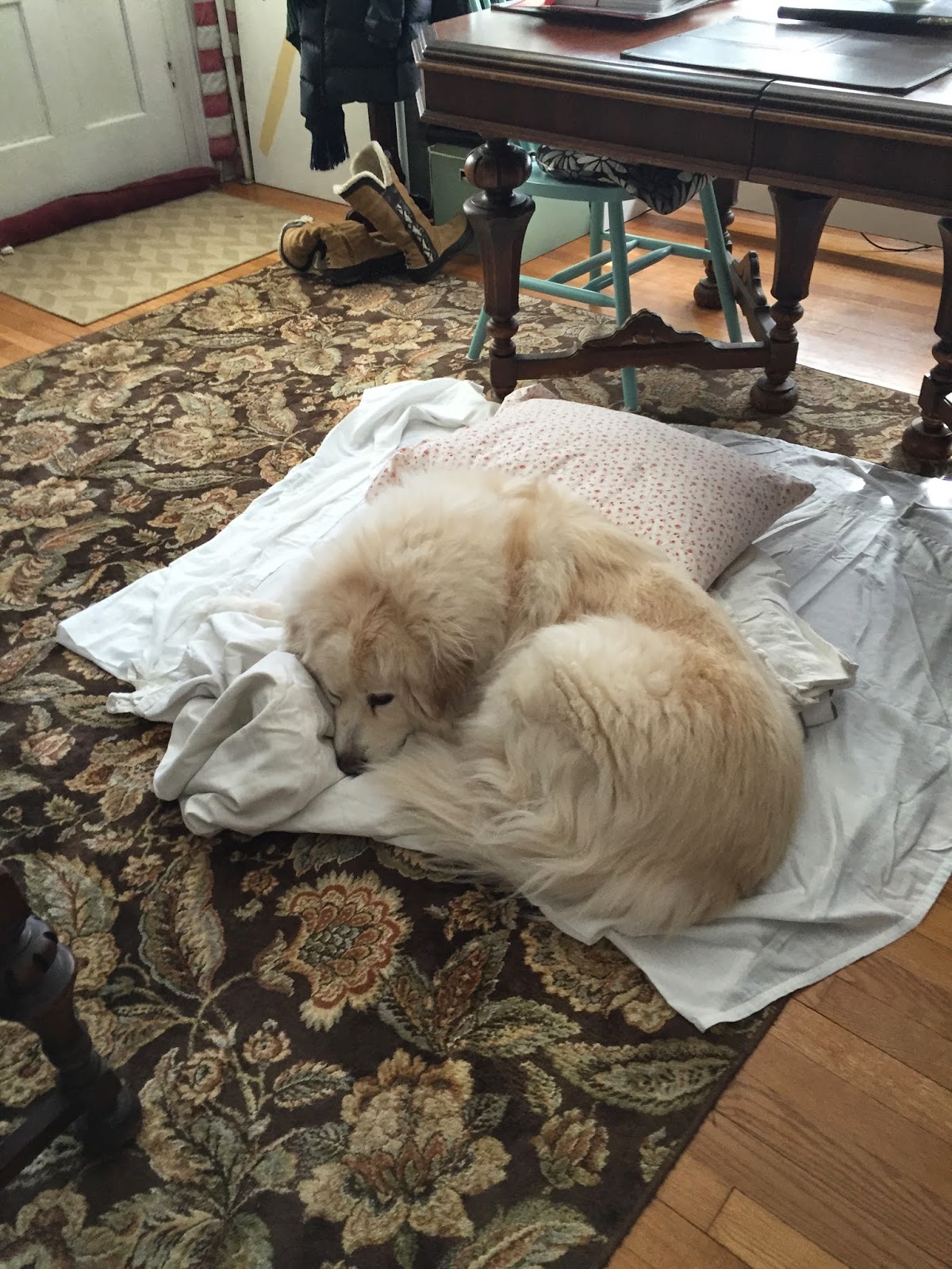 She never made it home but after she was given rest, we got back to Valerie’s house and found Hudson on the pile of comforters and pillows
