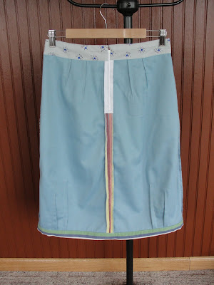 Also, the instructions didn’t explain what to do with the side of the skirt where the facing folds over, COVERING THE ZIPPER TEETH (see the right side? If the facing had been folded straight down, like the other side was, then it would have kept the zipper from zipping all the way up). So I had to improvise and try to manipulate the fabric. I think it turned out well, though.