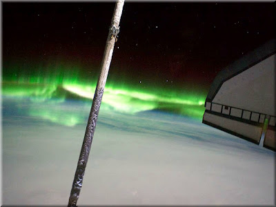 Las partículas que llegan son guiadas por el campo magnético de la Tierra hacia un par de regiones con forma de rosquilla llamadas “óvalos aurorales”. Hay uno alrededor del Polo Norte y otro alrededor del Polo Sur. Algunas veces, cuando la actividad solar es alta, los óvalos se expanden y la estación espacial orbita justo a través de ellos.