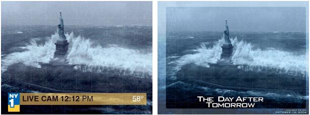 La estatua de la Libertad a punto de ser arrollada con el océano, en una imagen armada como si se tratara de una captura de TV, dejó congelados a muchos. Pero varios se dieron cuenta rápido que se trataba de otro fake. Es que habían visto The Day After Tomorrow (El día después de mañana), y recordaron la toma.