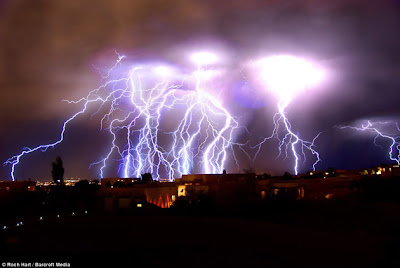 En las impresionantes imágenes se observa cómo los rayos caen constantemente en Nuevo México, EE UU, durante más de diez minutos muy cerca de la zona poblada.