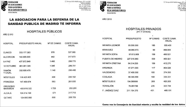 ¿Cuánto le pagará la Comunidad Autónoma a las empresas? No se sabe aún, pero probablemente una cantidad que oscila en torno a los 600 euros al año por cada paciente que tenga como referencia el hospital en cuestión. Es decir, que la empresa cobra al año de la Comunidad igual por un paciente que gaste 50 euros que por uno que gaste 450. Esto tendría sentido si la empresa atendiera a los pacientes que salen caros también, y por ejemplo una persona mayor que gastara 900 euros se compensara con una persona joven que gasta 300.Pero resulta que las personas generamos al sistema sanitario el 50% de gasto de toda nuestra vida nuestro último año de existencia. Los ancianos son los que generan el grueso del gasto. Por eso la Comunidad de Madrid quiere desmantelar el Hospital de La Princesa tal y como lo conocemos hoy. Para hacer un gran hospital que atienda a los pacientes que no salen rentables a la empresa privada. Así la empresa se quedará con los pacientes que generan menos de 600 euros de gasto al año y ganará mucho dinero, mientras que será la Comunidad (es decir, el dinero de todos) la que sustentará a los que más gasto generan. Es un negocio redondo para las empresas a costa del contribuyente.